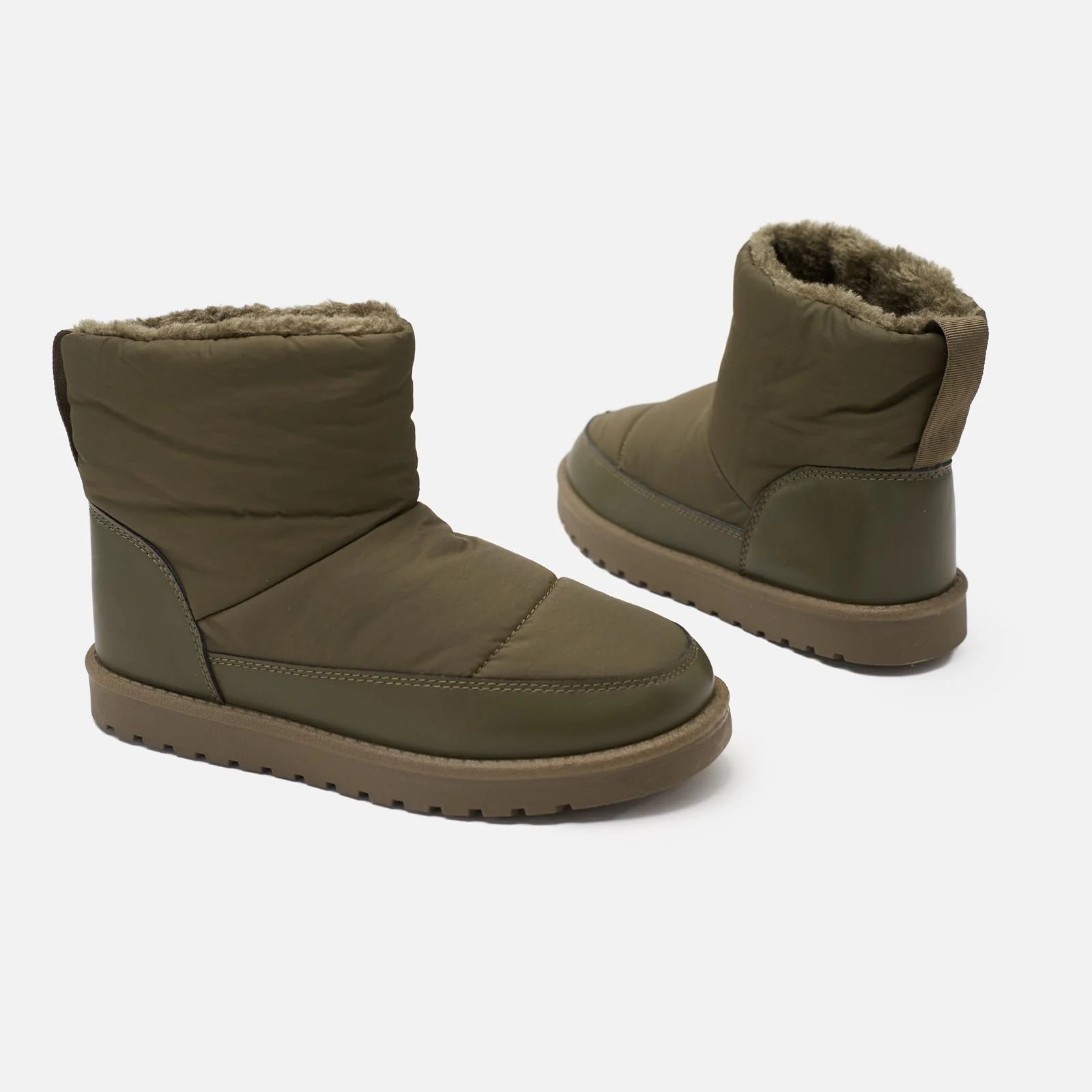 These stylish olive ankle boots are made from durable synthetic fabric, offering water-resistant properties for everyday wear. The rubber sole ensures good grip, while the regular fit provides comfort throughout the day. Perfect for both fashion and functionality.