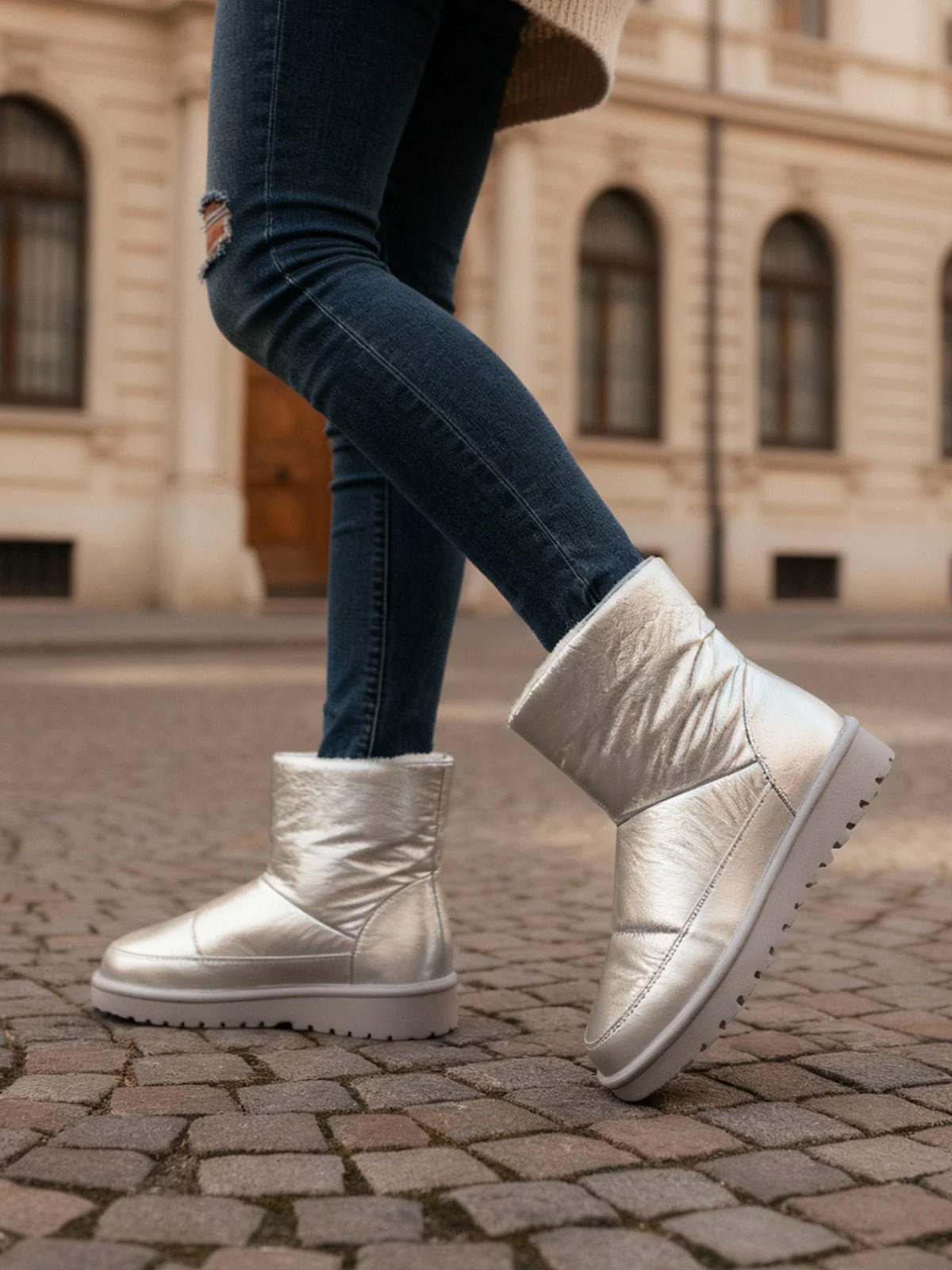 These stylish silver ankle boots are made from durable synthetic fabric, offering water-resistant properties for everyday wear. The rubber sole ensures good grip, while the regular fit provides comfort throughout the day. Perfect for both fashion and functionality.