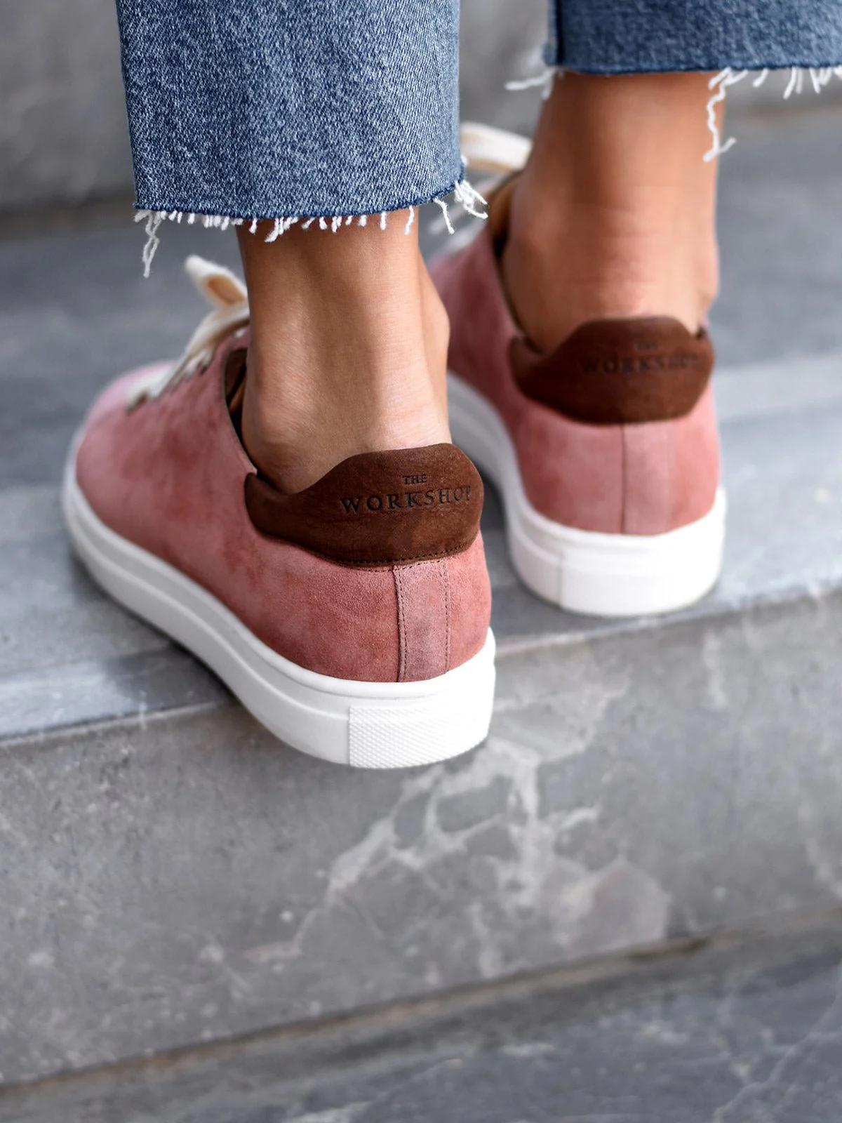 Introducing the Sienna Pink sneakers, a fashionable addition to your shoe collection. Made from genuine Italian suede leather, these sneakers are not only stylish but also durable. The lining is also made of genuine Italian suede leather for extra comfort. The rubber sole makes these sneakers easy to wear and perfect for any occasion. Handmade to ensure the highest quality, these sneakers are true to size and have a soft feel for added comfort. Don't miss out on these stylish and comfortable sneakers, add them to your wardrobe today.